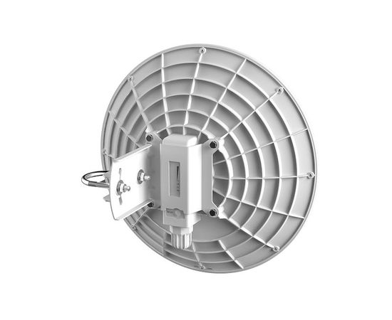 DynaDish 6 — мощное беспроводное устройство уличного исполнения, оснащенное интегрированной панельной антенной с усилением 25 dBi, мощным процессором с частотой 600 МГц, а также Ethernet-портом 1 Гбит. Устройство работает в частотном диапазоне 5900–6400 МГц в двухканальном режиме, поддерживая стандарты беспроводной связи 802.11a/n. Питание устройства осуществляется посредством Passive PoE, что позволяет распологать устройство в труднодоступных местах.
