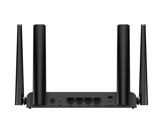 Модель поддерживает Wi-Fi 4 со скоростью до 300 Мбит/с в диапазоне 2.4 ГГц, оснащена четырьмя внешними антеннами для более стабильного сигнала и позволяет использовать подключение как по мобильной сети, так и через кабельный WAN/LAN порт.