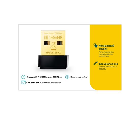 Archer T2U Nano принимает сигнал Wi-Fi в двух диапазонах. Технология 256QAM позволяет увеличить скорость передачи данных на 33% в диапазоне 2,4 ГГц – с 150 Мбит/с до 200 Мбит/с. Скорость до 433 Мбит/с на 5 ГГц отлично подходит для просмотра потокового видео и онлайн-игр без задержек, а скорость до 200 Мбит/с на 2,4 ГГц – для просмотра веб-страниц.