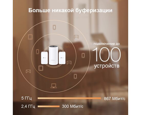 Deco способен обеспечить непрерывное соединение до 100 устройств, при этом благодаря стандарту Wi-Fi 802.11ac скорость сети в три раза выше, чем на роутерах предыдущего поколения†.