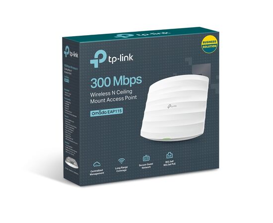 Omada EAP115 предназначена для простого крепления к стене или на потолке. Поддержка Power over Ethernet (PoE) позволит передавать электрический сигнал по сетевому кабелю для питания устройств – и вам не придётся беспокоиться об этой задаче при эксплуатации точек доступа.