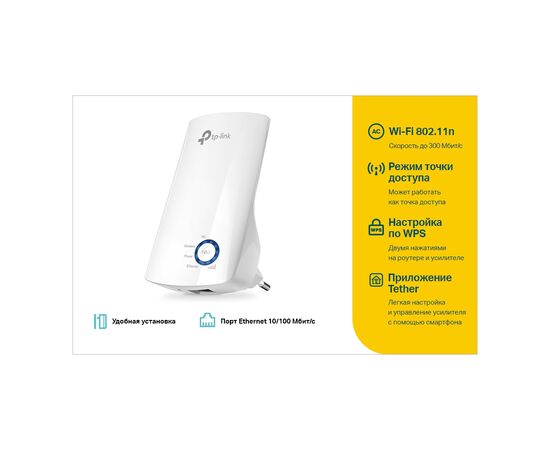 Порт Ethernet позволит TL-WA850RE работать в качестве беспроводного адаптера для подключения таких проводных устройств, как проигрыватели Blu-ray®, игровые консоли, устройства видеозаписи и Smart TV. Устройство также одновременно сможет обеспечивать подключение к сети Wi-Fi.