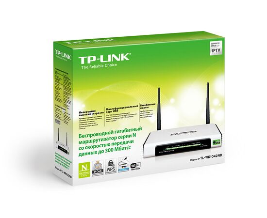 Беспроводной гигабитный маршрутизатор TL-WR1042ND обладает скоростью беспроводного соединения до 300 Мбит/с и является превосходным решением для выполнения таких задач, как просмотр HD-видео, звонки по Интернету, обмен файлами большо размера и онлайн-игры. Благодаря поддержке MIMO (многоканальный вход - многоканальный выход) и WMM (Wi-Fi Multimedia) и гигабитным портам Ethernet пользователи смогут одновременно использовать множество ресурсоёмких и чувствительных к пропускной способности приложений. Маршрутизатор обладает портом USB, обеспечивающим совместный доступ к сетевому принтеру, файлам, медиа и FTP-серверу. Кнопка Wi-Fi On/Off позволяет быстро включать/выключать беспроводное вещание маршрутизатора.