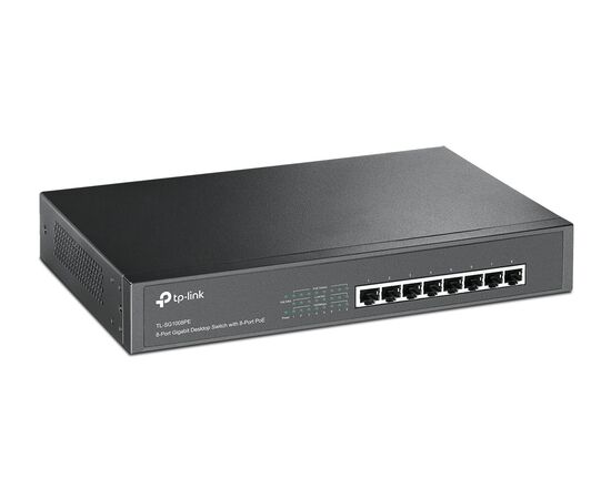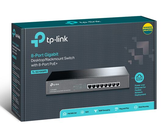 Все 8 портов TL-SG1008PE поддерживают стандарт Power over Ethernet Plus (PoE+), который может автоматически обнаруживать и обеспечивать питанием устройства, поддерживающие стандарт IEEE 802.3af/at. В данном случае, электроэнергия передается вместе с данными по одному кабелю, позволяя расширять вашу сеть в местах, где расположены электрические кабели или розетки, если Вы уожелаете установить там такие устройства, как точки доступа, IP-камеры и IP-телефоны.