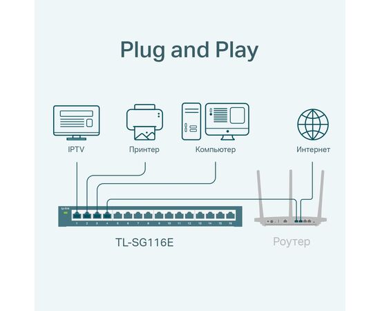 TL-SG116E позволит увеличить скорость подключения к серверу или магистральной сети. Где бы вы ни находились — в офисе или дома — TL-SG116E окажет незаменимую помощь в организации вашего бизнеса.