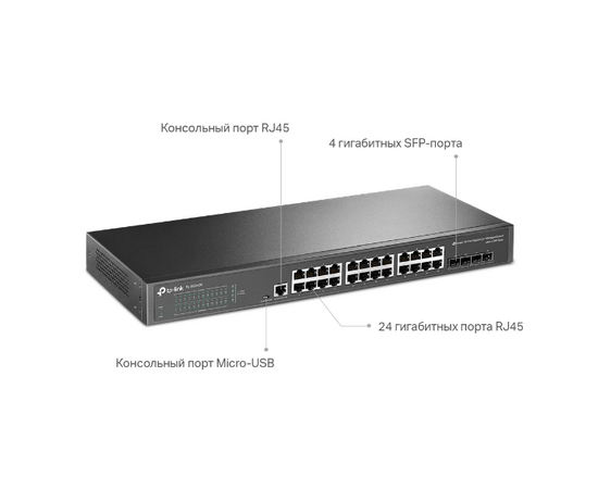 JetStream 24‑портовый гигабитный управляемый коммутатор уровня 2+ с 4 SFP‑слотами