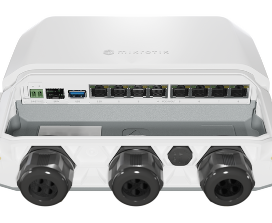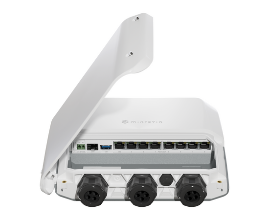MikroTik RB5009UPr+S+OUT — это уличный маршрутизатор с поддержкой PoE-in и PoE-out, предназначенный для профессиональных сетей. Оснащён 7 гигабитными портами, 1 портом 2.5G, 1 SFP+ (10G) слотом, а также USB 3.0. Надёжный металлический корпус с классом защиты IP66 делает его идеальным для установки вне помещений: в телекоммуникационных шкафах, на опорах и мачтах.