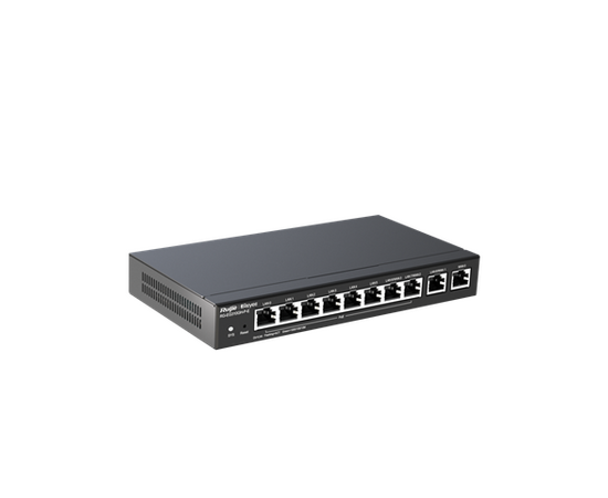 Reyee RG-EG310GH-P-E — это высокопроизводительный маршрутизатор с поддержкой PoE, предназначенный для малых и средних бизнес-сетей. Устройство оснащено 8 портами RJ45 10/100/1000 Мбит/с с поддержкой PoE/PoE+, 1 портом Gigabit RJ45, 1 SFP-портом, а также обеспечивает NAT до 2 Гбит/с, управление через Ruijie Cloud, встроенные функции DPI, QoS, VPN, управление точками доступа и коммутаторами.