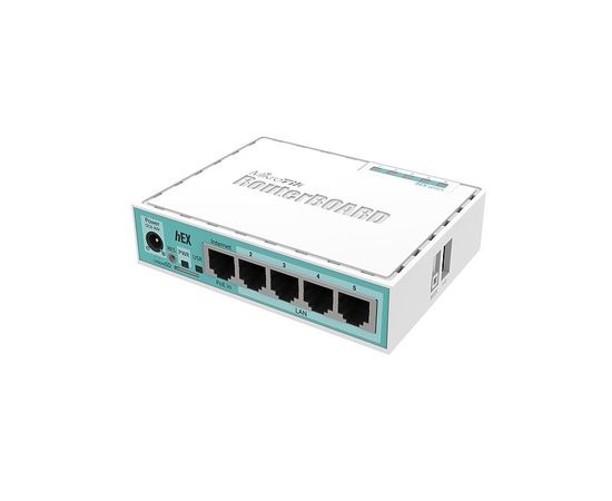 hEX – SOHO-маршрутизатор MikroTik для небольших офисов, оснащённый 5-ю Ethernet-портами 1 Гбит/с, мощным двухядерным процессором с тактовой частотой 880 МГц, 256 МБ оперативной памяти, портом USB, а также слотом для карт памяти microSD. Ethernet-порт №1 может использоваться для получения питания устройства посредством Power over Ethernet стандарта Passive PoE 8—30 В от другого оборудования. Устройство поддерживает аппаратное IPsec шифрование данных (~470 Мбит/с), а также возможность установки пакета 'MikroTik The Dude'.