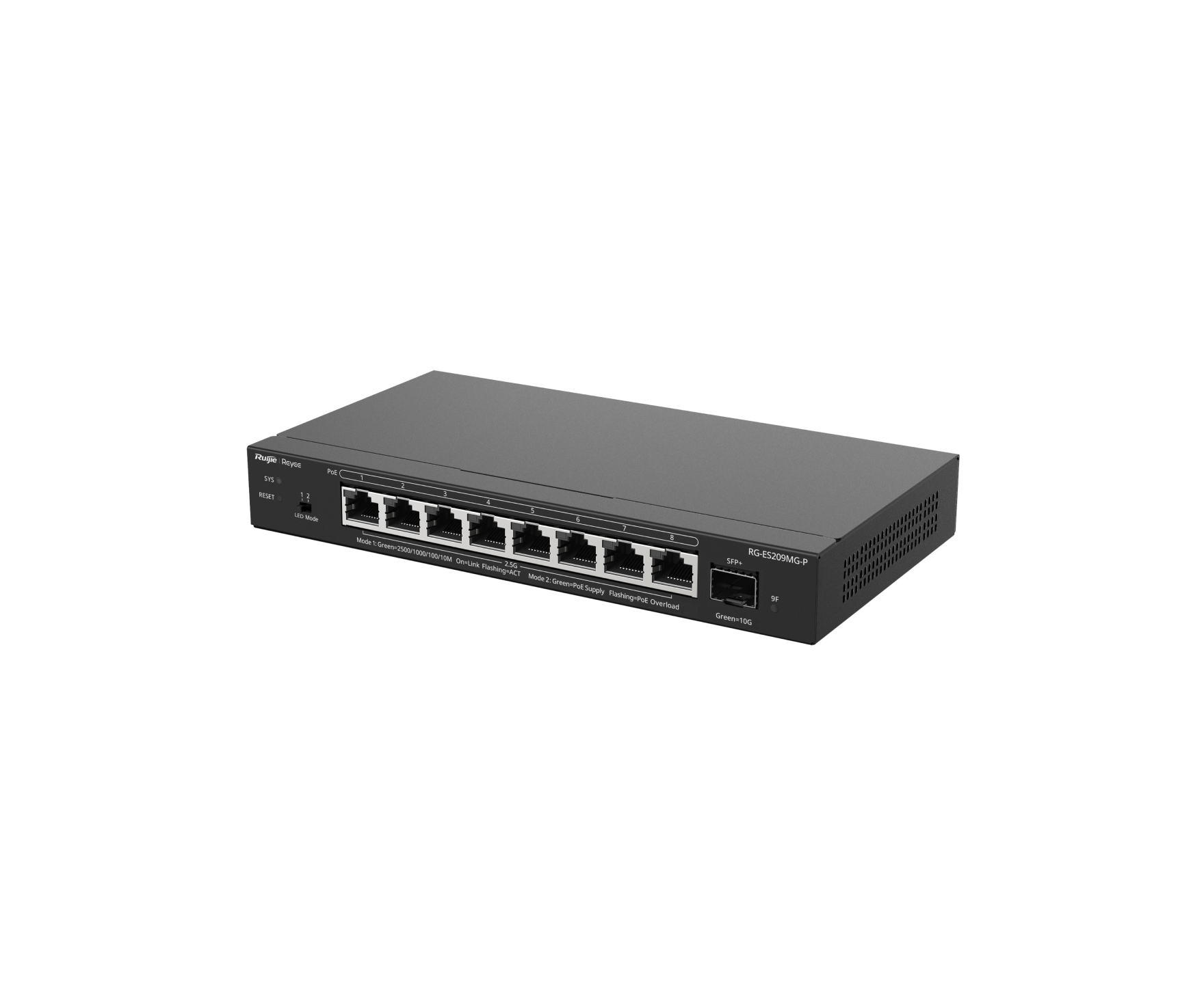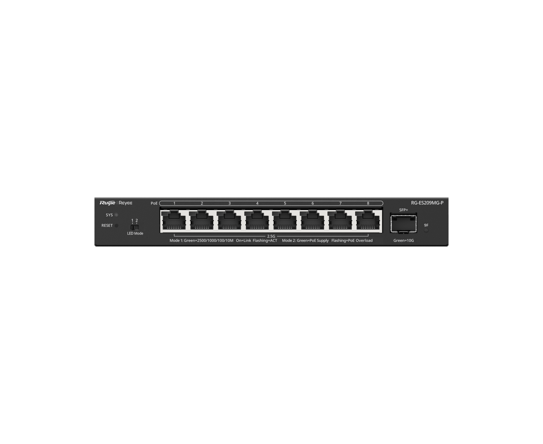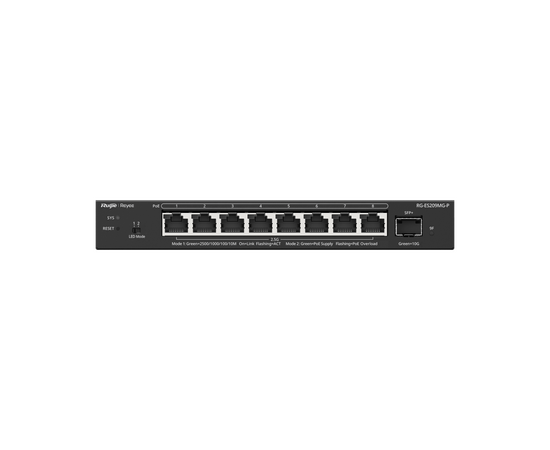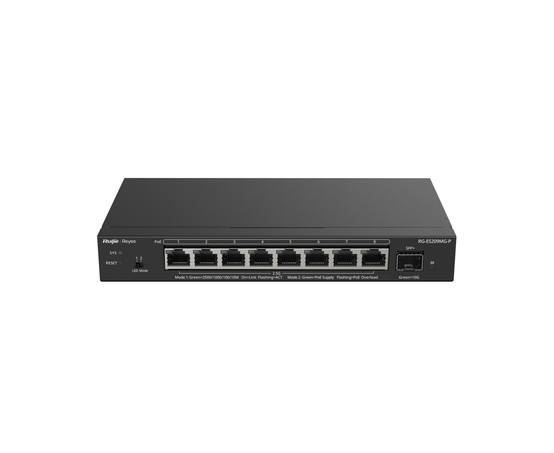 Reyee RG-ES209MG-P — это современный коммутатор для офисов, школ, магазинов, квартир, вилл и других объектов, где нужна более высокая скорость сети, PoE-питание и удобное управление через облако. Модель отлично подходит для мощных точек доступа, IP-камер, NAS и другой техники, которой уже недостаточно стандартного гигабита.