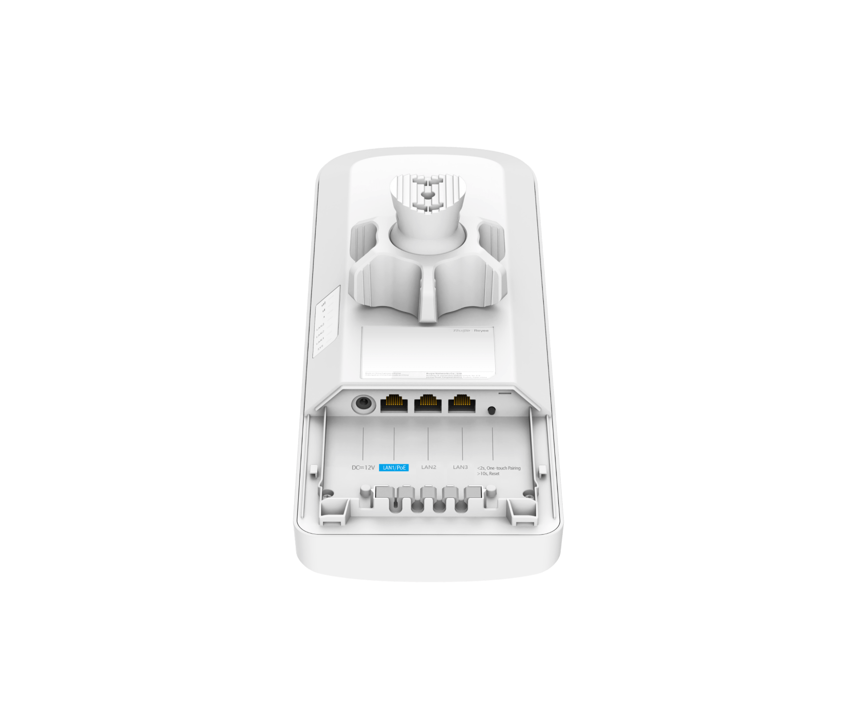 Среди ключевых преимуществ RG-EST450G — 3 гигабитных порта, поддержка трёх вариантов питания, one-touch pairing для PTMP, TDMA, SON, AI heatmap и облачное управление через Ruijie Cloud. Благодаря сектору 120° модель особенно удобна в проектах, где нужно подключать сразу несколько точек в одном направлении.