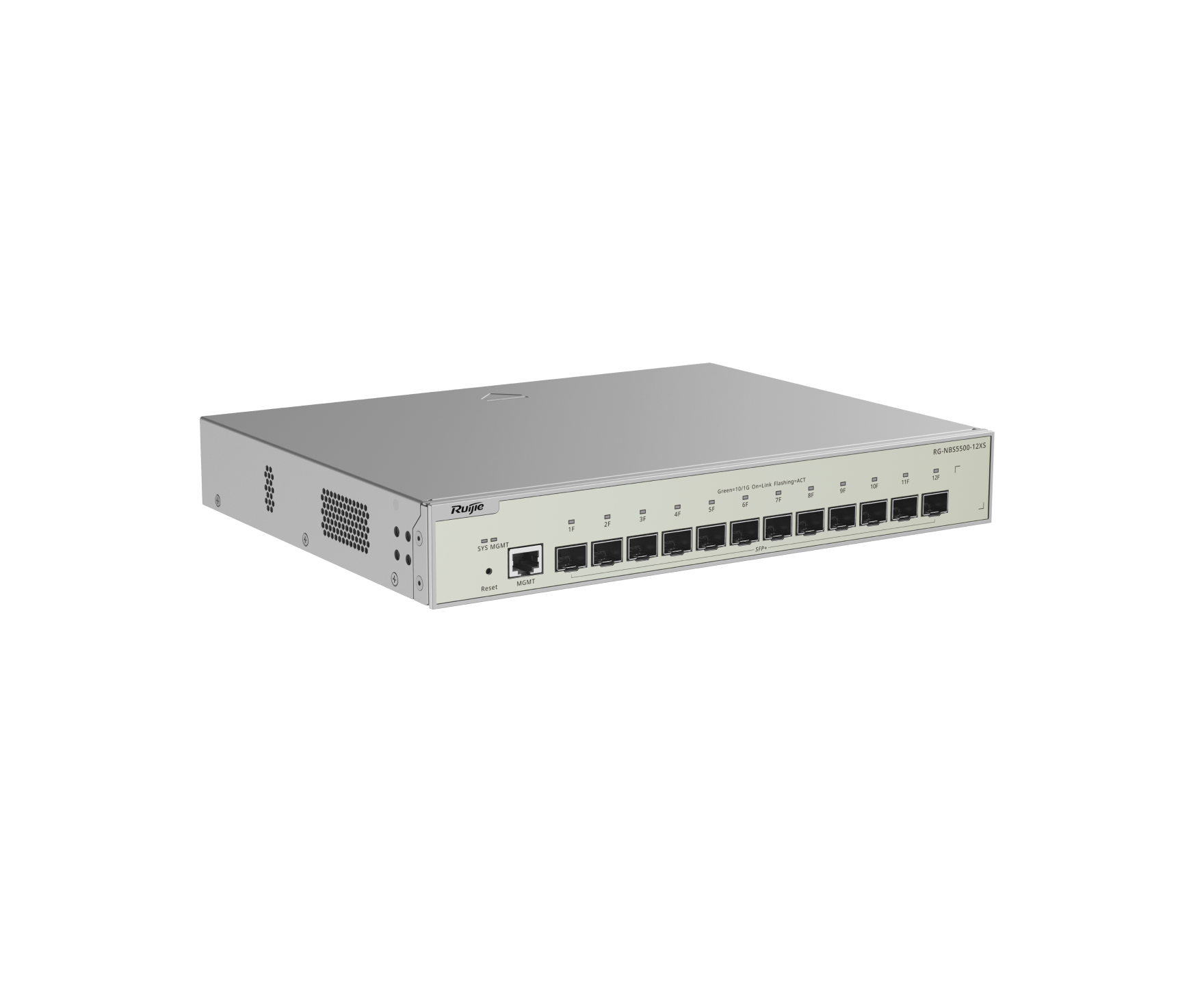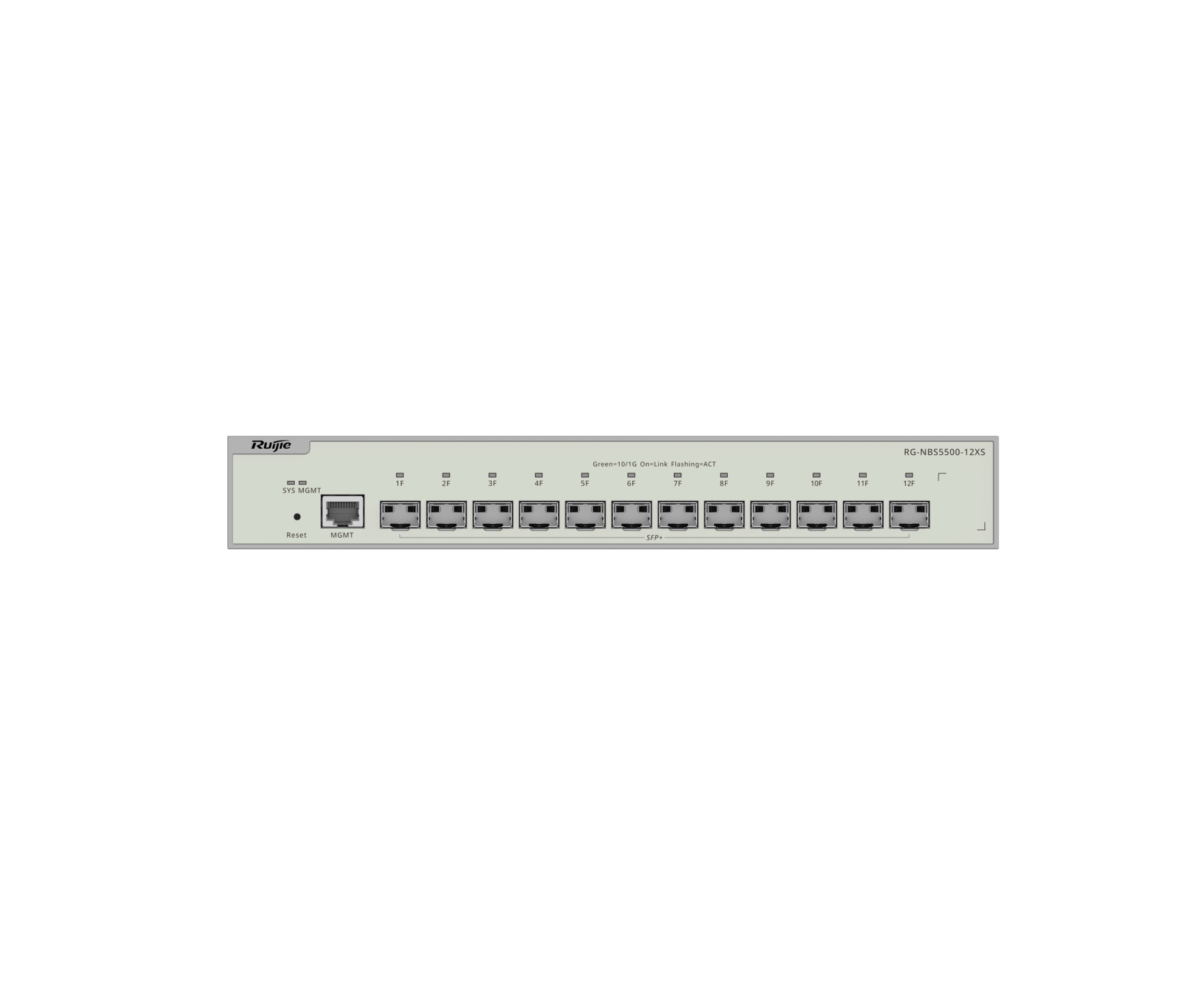 Reyee RG-NBS5500-12XS — это управляемый коммутатор уровня Layer 3 с полностью оптической 10G-архитектурой для высокоскоростных сетей. Модель оснащена 12 портами 10GE SFP+ и отдельным MGMT-портом, поэтому подходит для задач, где важны высокая пропускная способность, стабильная магистраль и точная настройка сети.