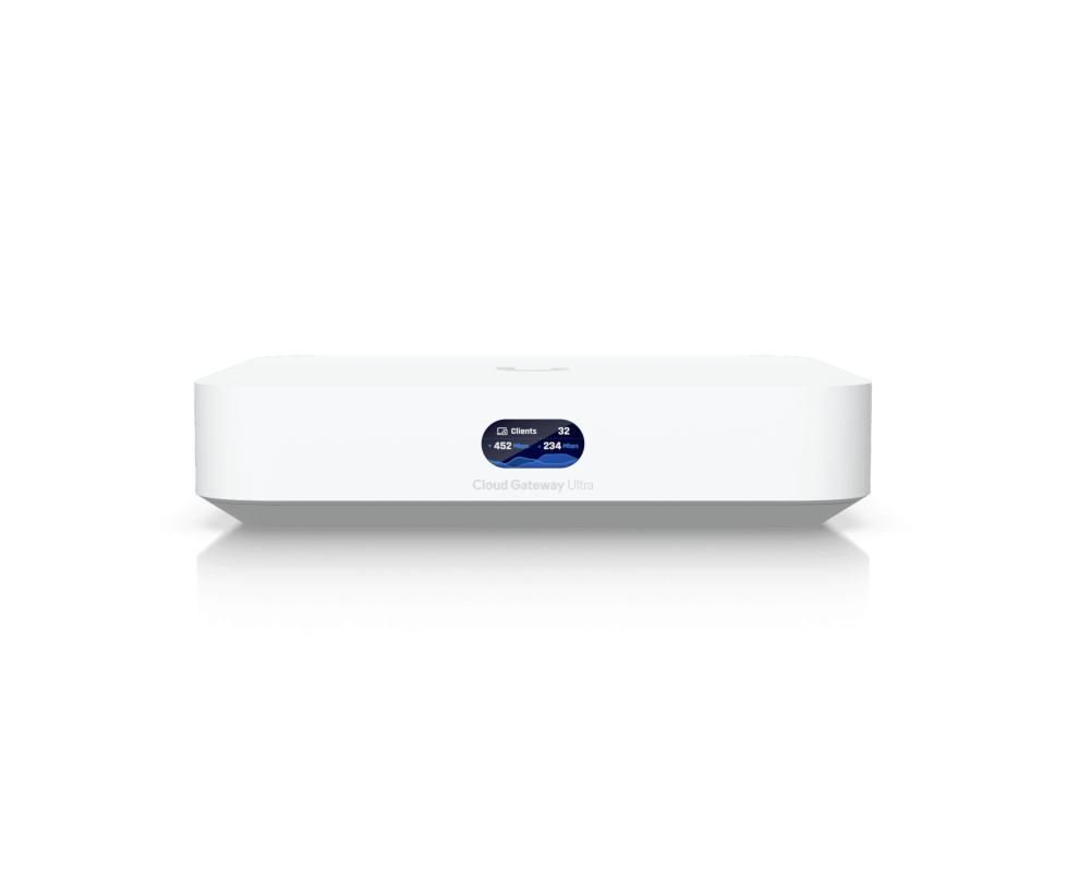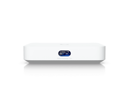 UniFi Cloud Gateway Ultra (UCG-Ultra) — мощный и компактный мульти-WAN шлюз UniFi с продвинутыми функциями маршрутизации и безопасности. Запускает UniFi Network для управления сетью, поддерживает балансировку нагрузки Multi-WAN, отображает статус на 0.96″ LCM-дисплее и питается через USB-C (адаптер в комплекте). Подходит для малого/среднего офиса и объектов с большим числом пользователей.