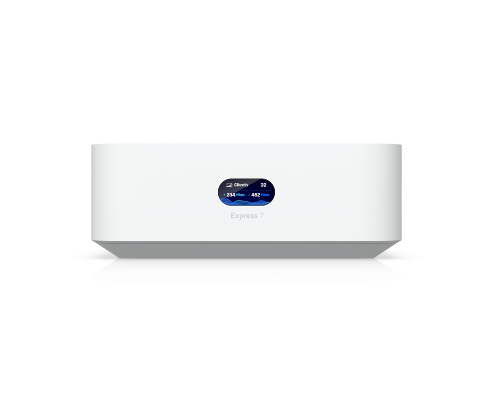 UniFi Express 7 (UX7) — компактный облачный шлюз и Wi-Fi точка доступа в одном устройстве. Поддерживает Wi-Fi 7 (2.4/5/6 ГГц), может управлять UniFi-устройствами и подходит для дома, небольшого офиса или как узел расширения сети (Mesh). Устройство оснащено 10G WAN и 2.5G LAN для высокоскоростных подключений.