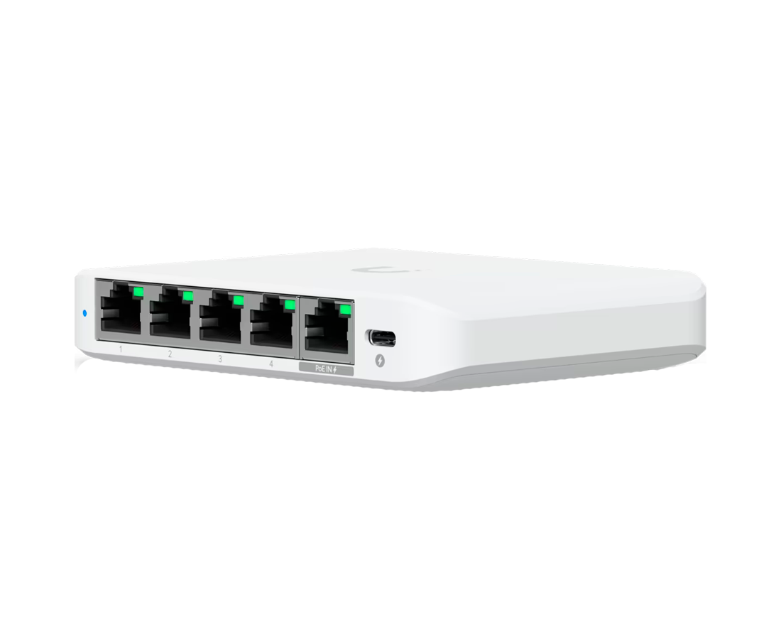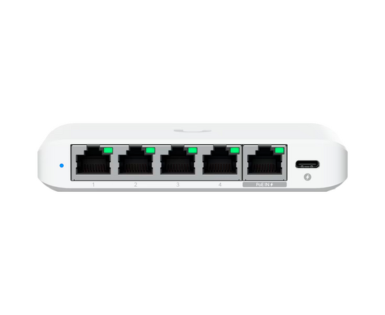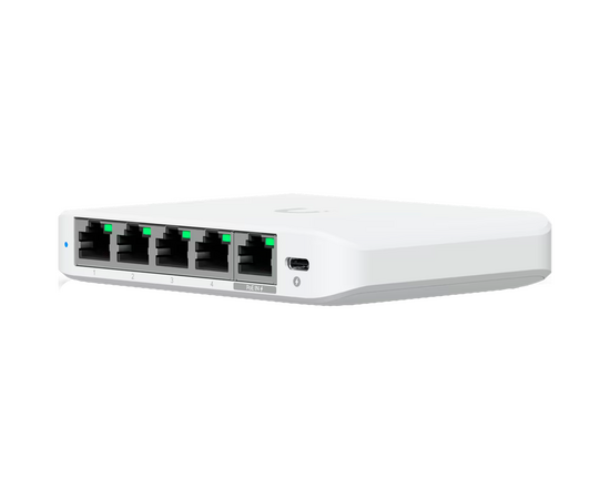 Ubiquiti UniFi Flex Mini 2.5G — это компактный управляемый коммутатор для современных сетей, где требуется более высокая скорость на клиентских портах по сравнению с обычным гигабитом. Модель оснащена пятью портами 2.5 GbE RJ45 и подходит для быстрого подключения рабочих станций, точек доступа, NAS и другого сетевого оборудования.