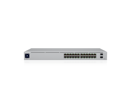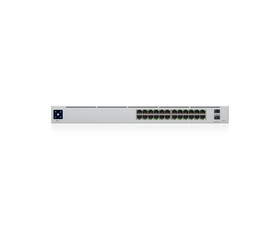 Ubiquiti UniFi USW-PRO-24-EU (USW-Pro-24) — профессиональный управляемый коммутатор UniFi с 24 гигабитными RJ45-портами и 2 магистральными 10G SFP+ для uplink-соединений. Поддерживает расширенные функции L2/L3 (маршрутизация между VLAN, статическая маршрутизация, DHCP relay), управляется через UniFi Network и оснащён сенсорным дисплеем 1.3". Благодаря fanless-охлаждению работает практически бесшумно и подходит для офисных и корпоративных сетей.