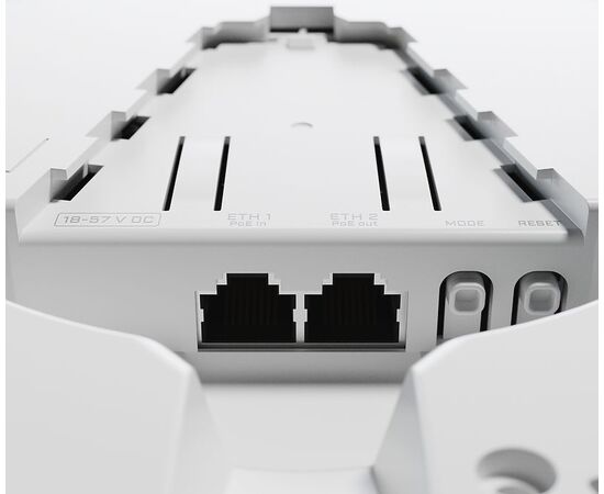 cAP XL ac — компактная всенаправленная точка доступа MikroTik, работающая одновременно в двух частотных диапазонах 2400–2483,5 МГц MIMO 2x2 и 5150–5875 МГц MIMO 2x2, и поддерживающая стандарты беспроводной связи 802.11a/b/g/n/ac. Питание устройства осуществляется посредством Порта №1 PoE in стандартов 802.3af/at (PoE+).Также, точка доступа способна осуществлять питание подключенных устройств с помощью поддержки PoE out стандарта Passive PoE на Порту №2.