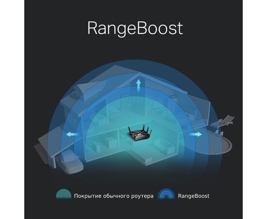 Высокопроизводительные антенны и передатчик сигнала позволяют вещать мощный Wi-Fi по всему дому. Технология RangeBoost значительно улучшает обнаружение устройств, находящихся далеко или со слабым уровнем сигнала, обеспечивая вашей сети еще большее покрытие. Beamforming направляет сигнал Wi-Fi в сторону подключенных устройств для стабильного Wi-Fi.