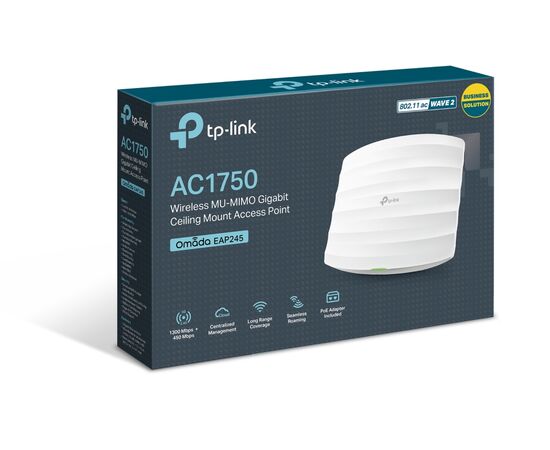 EAP245 поддерживает питание по стандарту 802.3af PoE и по пассивному PoE – таким образом, она может питаться от PoE-коммутатора или PoE-адаптера, что делает подключение простым и гибким. Устройство может легко крепиться к стене или к потолку.