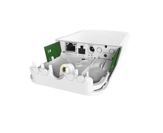 wAP R — это новая беспроводная точка доступа от MikroTik в компактном погодоустойчивом корпусе MikroTik wAP, работающая в частотном диапазоне 2400—2483,5 МГц. Устройство оснащено miniPCIe-слотом для подключения 2G/3G/LTE-модемов и других дололнительных радиомодулей, слотом для SIM-карты, а также LAN-портом 10/100 Мбит (Fast Ethernet); имеет 2 встроенные LTE-антенны с усилением 2-4.5 dBi. Пользователь также может установить свои собственные внешние LTE-антенны, используя встроенные UFL-разъемы. Точка доступа может использоваться как в помещении, так и на улице.
