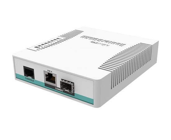 CRS106-1C-5S — небольшой управляемый коммутатор настольного исполнения, имеющий 1 комбо-порт RJ45/SFP 1 Гбит и 5 разъемов SFP 1.25 Гбит.