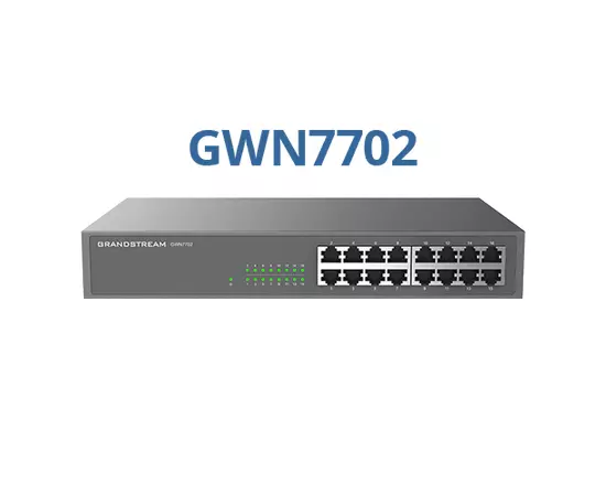 GWN7702 — «plug-and-play» switch: sozlash talab qilmaydi, SOHO va K/OB bizneslar uchun tejamkor gigabit ulanishini ta’minlaydi. Metall korpus, stol/rekka o‘rnatish, Auto MDI/MDIX, QoS va Storm Control funksiyalari mavjud.