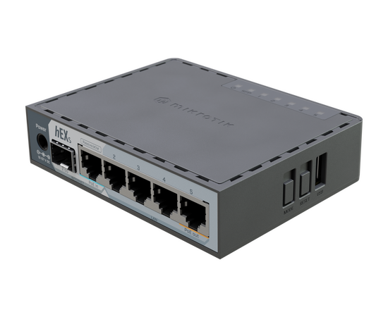 MikroTik hEX S (2025) — bu ixcham va tejamkor kabel router, 5 ta Gigabit Ethernet porti (1-chi port PoE‑in, 5-chi port PoE‑out bilan), 2.5 Gb SFP slot, USB‑A port, va kuchli dual-core ARM CPU bilan jihozlangan. RouterOS v7 asosida ishlaydi va uy, ofis, kichik media laboratoriyalar uchun ideal — yuqori tezlik, VLAN, trafik boshqaruvi kabi funksiyalarni taqdim etadi
