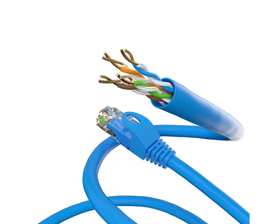 Ekranlanmagan LAN/tarmoq kabeli — tarmoq qurilmalarini ulash uchun mo‘ljallangan, 2 ta RJ45 ulagich bilan.