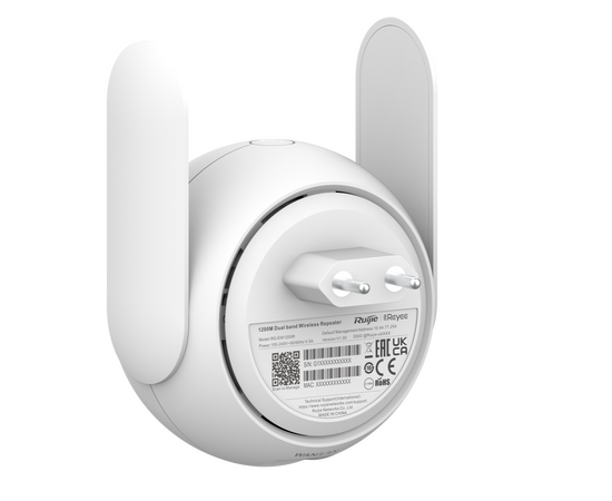 Reyee RG-EW1200R uy, kvartira, katta xona, kichik ofis va do‘kon uchun mo‘ljallangan ikki diapazonli Wi-Fi signal kuchaytirgichidir. Qurilma mavjud simsiz tarmoq qamrovini kengaytiradi, uzoq xonalarda signalni yaxshilaydi va Wi-Fi “o‘lik zonalar”ni kamaytiradi.